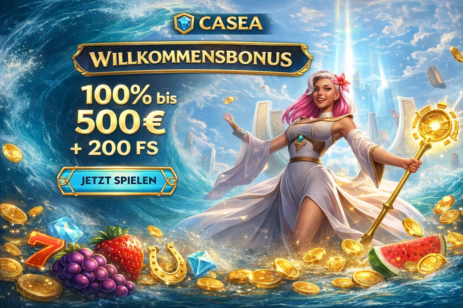 Das Casino casea startete 2026 unter dem Betreiber Stable Tech N.V. Bestätigt: 7.000+ Spiele von 100+ Studios, ein gestaffeltes Bonuspaket bis 1.750 €, Sportwetten auf 20+ Sportarten und ein vollwertiges Live Casino. Die Plattform ist auf Deutsch verfügbar und über casea.at erreichbar.